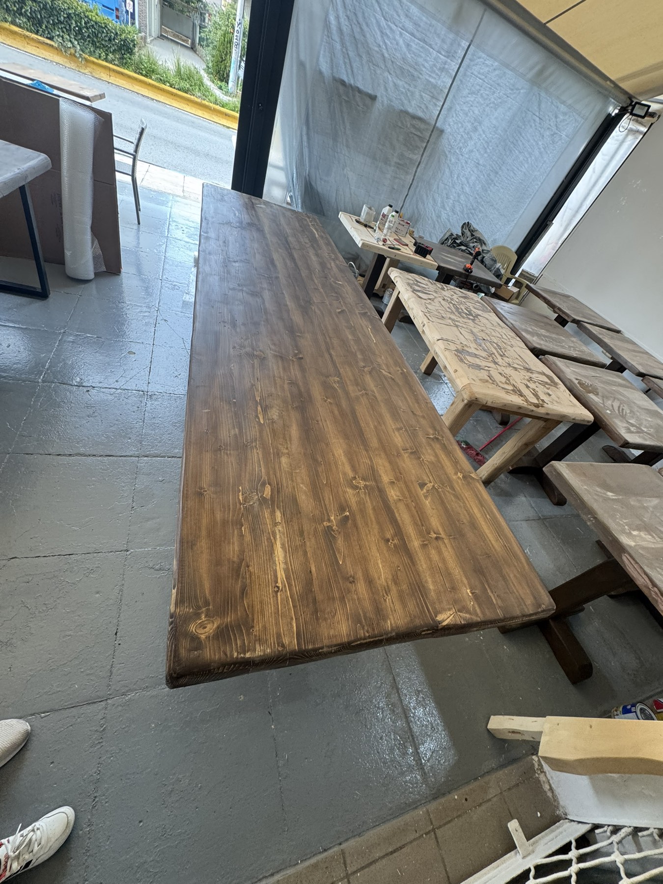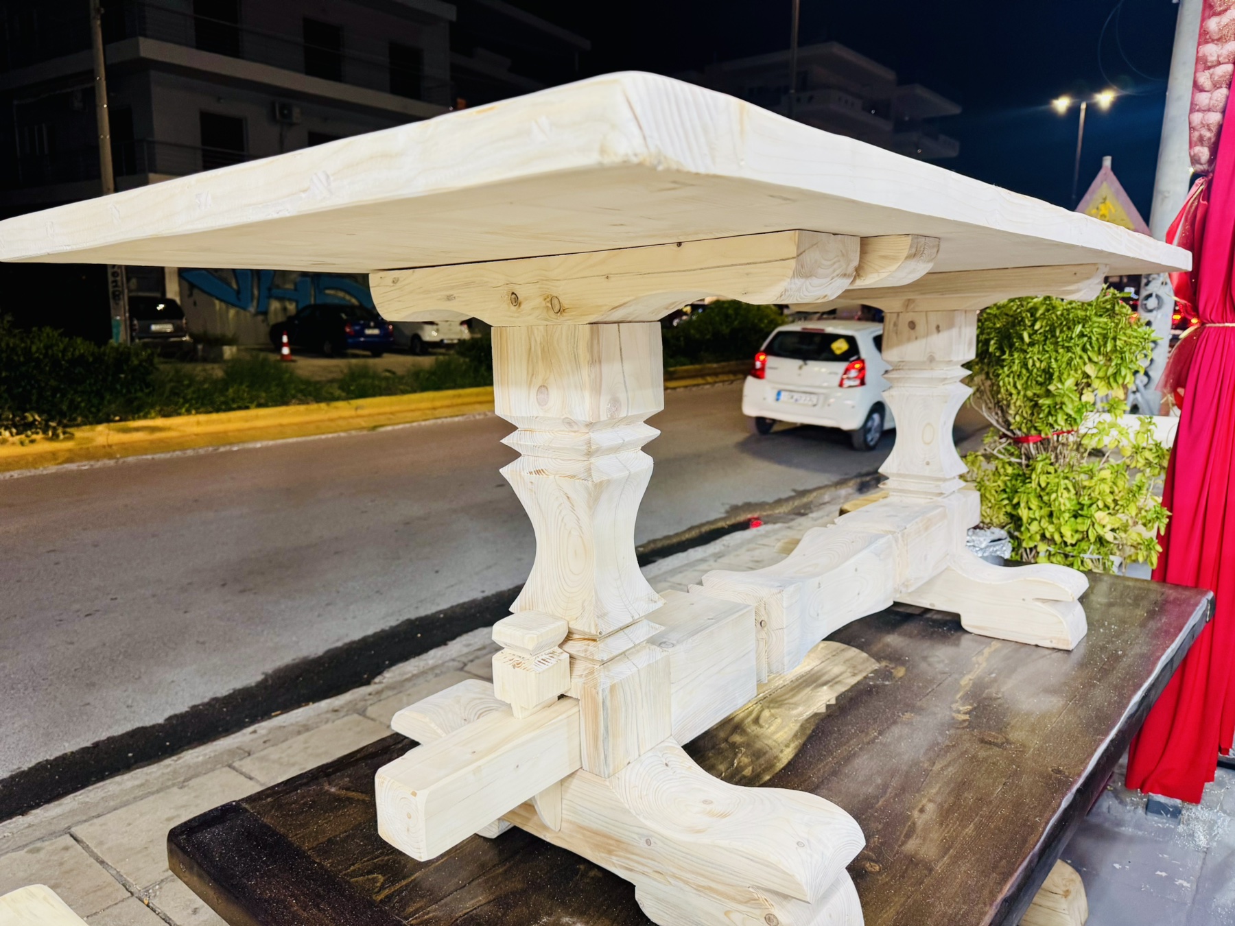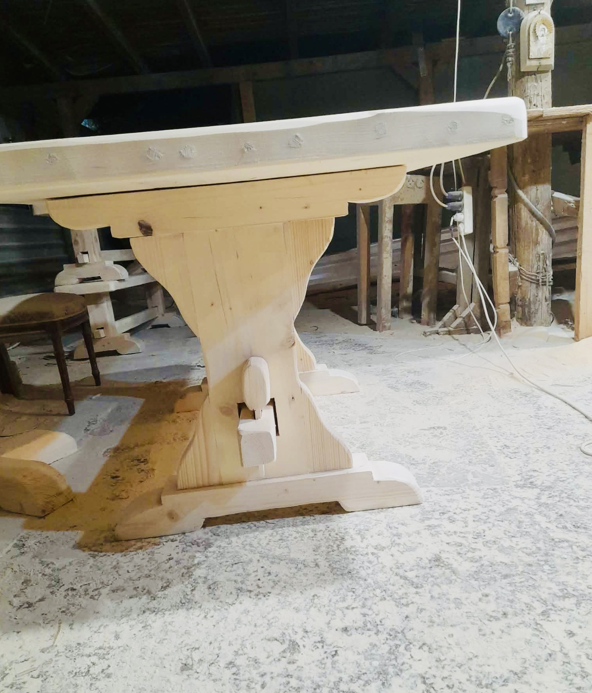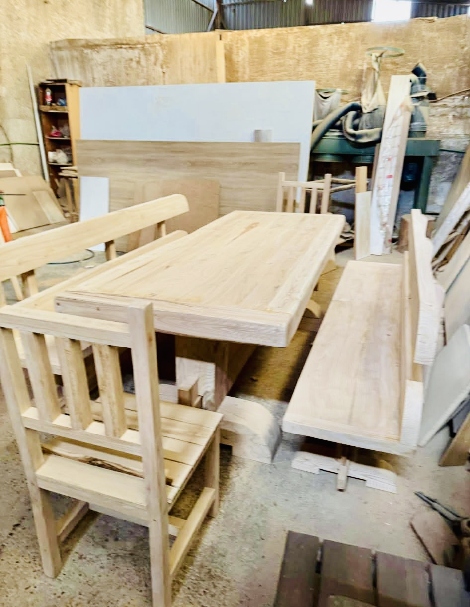 Η κατασκευή κάθε μοναστηριακού τραπεζιού γίνεται στο χέρι, από έμπειρους τεχνίτες με γνώση και σεβασμό στην τέχνη της ξυλουργικής. Η προσοχή στη λεπτομέρεια είναι εμφανής παντού, στις ενώσεις, στις λείανσεις, στα φινιρίσματα, ακόμα και στο βάψιμο.